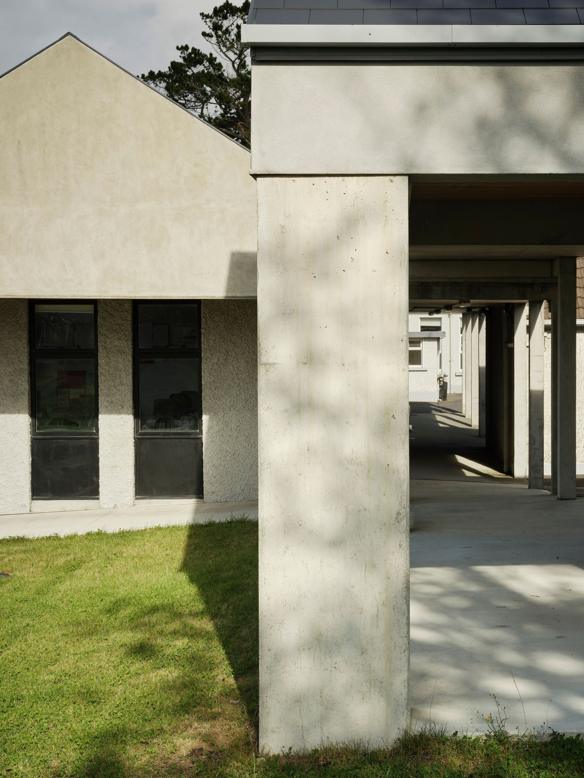 This new Science Lab of 127 sqm is for a small Irish-language secondary school in Rosmuc, Connemara. The design and construction lasted three years. This new Science Lab is the second phase in the ongoing new development at the school and is placed at right angles to the three Classrooms built in 2018. These new buildings are constructed to a passive house standard within a very restrictive budget from the Department of Education. They use everyday local materials, details and architectural language, which will allow for similar extensions as required. The Lab has natural daylighting and ventilation on three sides. The omission of internal circulation has significant economic, and environmental benefits. Instead, covered external circulation and shelters allow students to wait before and after school on the many wet and windy days. These new shelters are important social spaces which enclose a type of courtyard at the centre of the school, but open at the corners so that there are visual connections between all parts of the school and the small community.